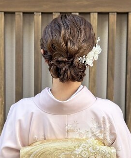 ゲストとして参列する場合は、訪問着や付け下げの色・柄に合わせて編み込みを加えるなど少し華やかさをプラスすると素敵です。