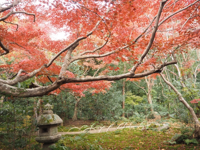 紅葉シーズンの限られた期間のみ一般公開される厭離庵(えんりあん)は、通常は非公開で拝観には予約が必要なスポットです。