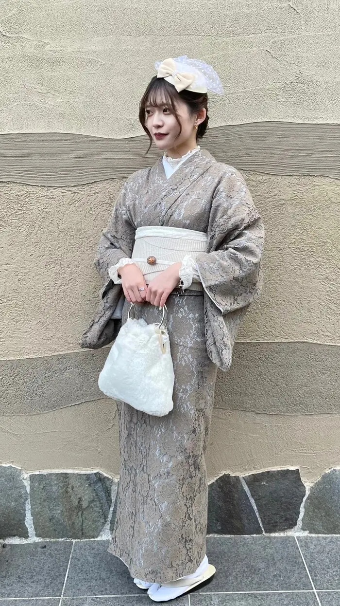 - ・どこで写真を撮っても華やかなレース着物コーデ