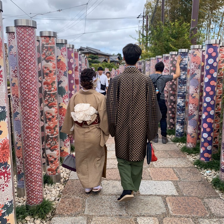 One particular path within “Kimono Forest” is named the “Path of Kimonos,” where Kyoto Yuzen fabric poles line both sides of the path like an avenue.
