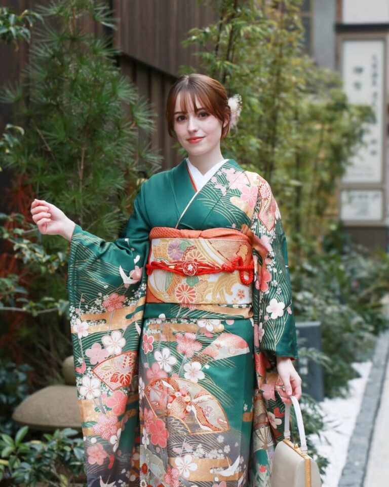 Styling Colored Long-Sleeved Kimono as First-Class Attire