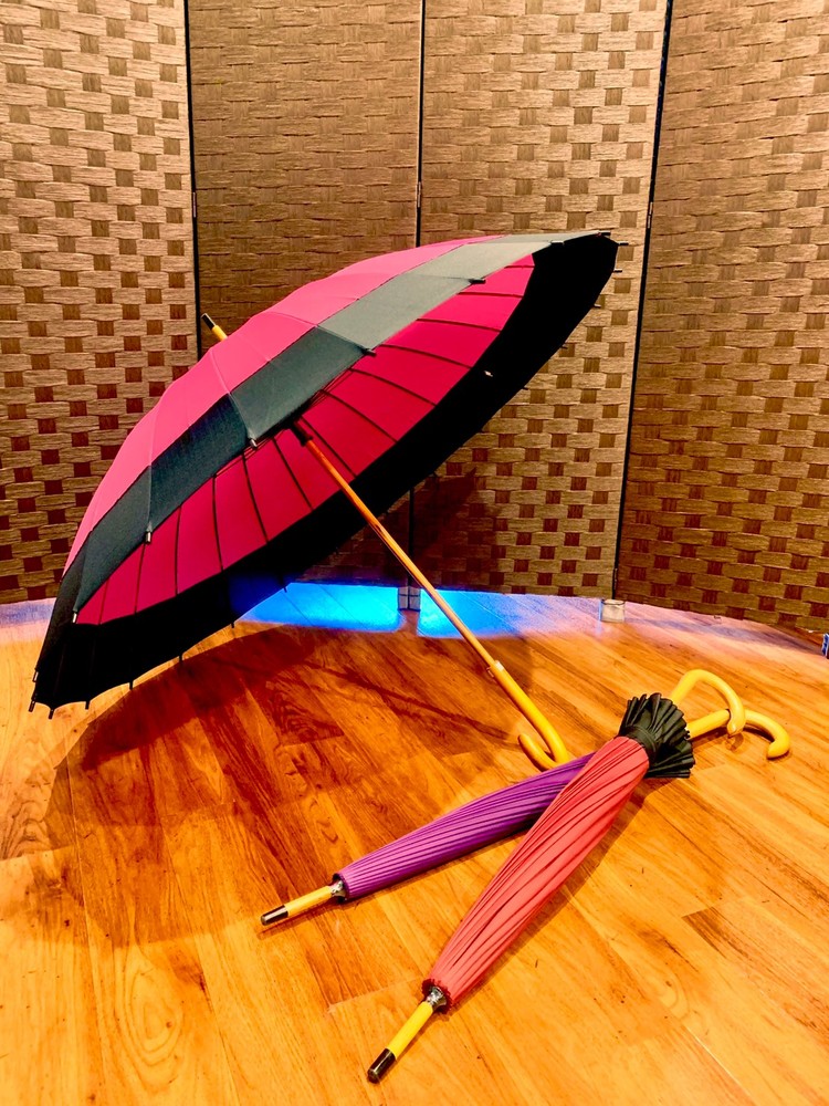 This umbrella’s distinctive features include its ’24 ribs,’ replicating the characteristics of traditional Japanese umbrellas, and a combination of black and dark colors that exudes a Japanese-style ambiance.