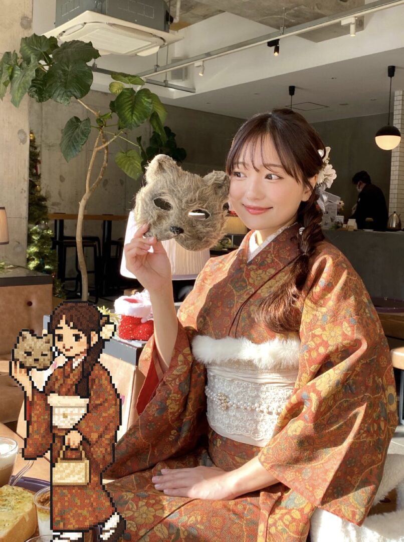 たとえば、テイクアウトのドリンクや和スイーツ、季節の限定フードなど、写真に一緒に写したいものを先にイメージしておくと、着物の色選びがスムーズになります。